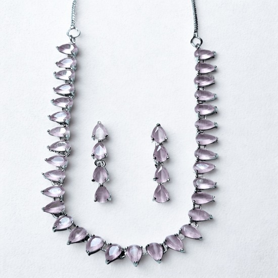 Pale Pink Teardrop Stone Necklace & Earring Set